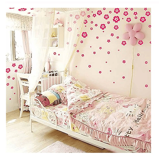Hermoso vinilo decorativo para pared con diseño de flores rosadas.